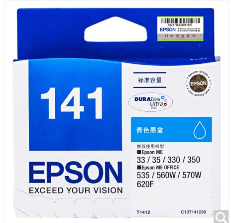 爱普生(Epson)T1412 青色墨盒 C13T141280(适用ME33 35 330 350 560W 570W)